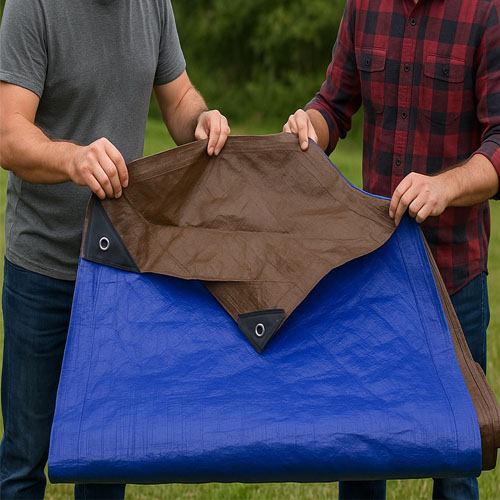 The Protected Brown and Blue Tarpaulin is very strong. It is not just a cover but a reliable protection. With “UV resistance & waterproof strength”, it lasts many seasons. It can be used for gardens, homes, farms, & more. This makes it a trusted choice against the weather for every need.