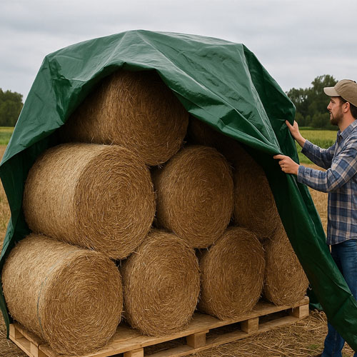 Heavy-duty tarpaulins are made from strong PVC-coated polyester fabric. They have great strength and can withstand all kinds of weather. These tarps come in many sizes, perfect for different covering needs. Small tarps measure 3.5m x 2.75m for lighter covering tasks. Large tarps measure 10m x 6m for stronger outdoor protection.