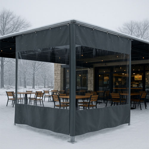 Our “Heavy-Duty PVC Transparent Waterproof Curtains” are the best solution. They shield outdoor & semi-outdoor spaces from wind & rain. These curtains block the cold but still allow light and visibility. Made from 0.6mm PVC, they offer strong waterproofing & durability. The curtains resist wind, temperature changes, & harsh outdoor conditions. They are ideal for both residential & commercial outdoor use. Whether enclosing a garage, pergola, patio, or greenhouse area. These curtains give reliable protection while looking neat & professional.