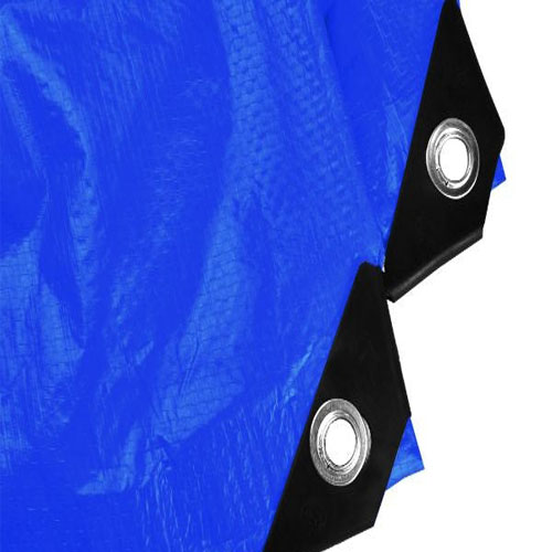 The Blue Tarpaulin has a strong 14 x 14 weave. This weave gives it great strength and tear resistance. The edges are reinforced for better durability and strength. Metal grommets are placed every 24 inches for securing. They help tie it using ropes or bungee cords. This ensures the tarp stays in place during storms.